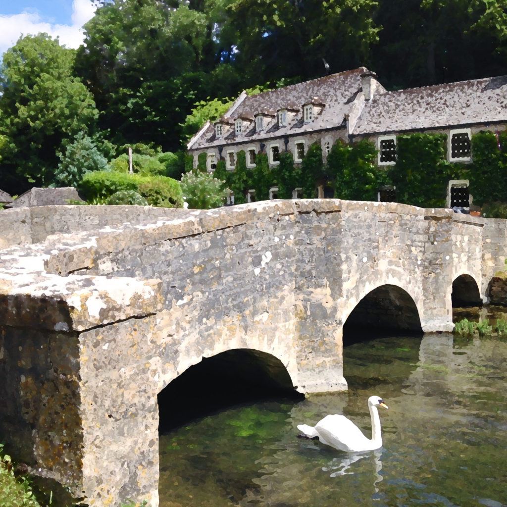 穏やかな流れ ...リバーコルンに戯れる白鳥 The Swan Hotel, Bibury