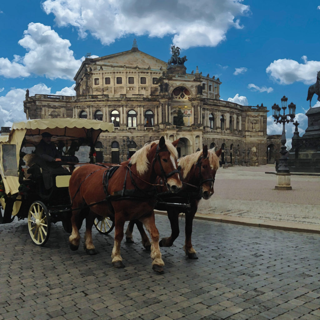 ツヴィンガー宮殿。聖母教会。ゼンパーオーパー。歩いて回れば結構な距離になりますが、馬車なら優雅に回れます。